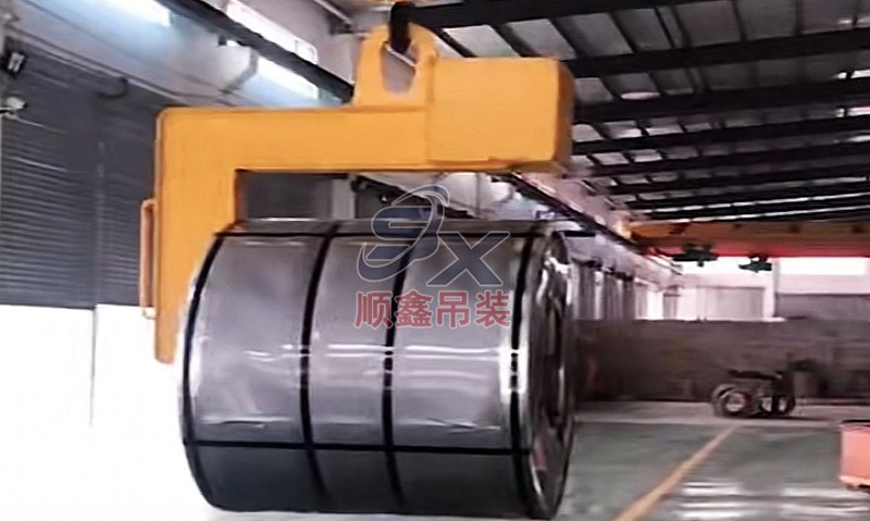 C型吊具適用于鋼卷的水平吊運(yùn),由吊具體和配重鐵組成。主體部分由合金鋼和鋼管拼接而成,截面為箱型結(jié)構(gòu),配重鐵起調(diào)節(jié)吊具平衡的作用,使吊具和被吊物的重心在一條線(xiàn)內(nèi)。載荷范圍:3.2-32噸。